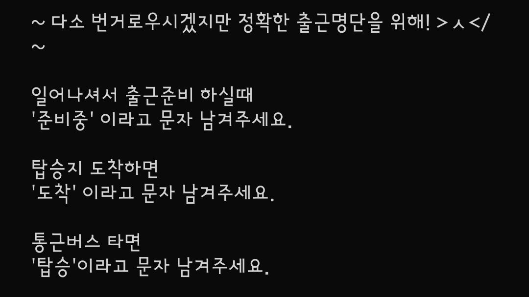 그렇게 출근도장까지 다 찍고 건물을 나오면 45인승 버스가 한 12대씩 서있다. 버스에 적힌 지역을 잘 보고 타도록 하자. 피곤해서 그런거 잘 못 보고 이상한거 탔다간 집으로 돌아오는데 몇 만원 깨질 수 있다. 여튼 구미로 오는 버스를 타자마자 기절한 나는 도착할때쯤 깨서 택시를 타고 기숙사로 돌아왔다. 가격이 훨씬 싼 시내버스 그런거 필요없다. 그냥 빨리 가서 쉬고싶었다.