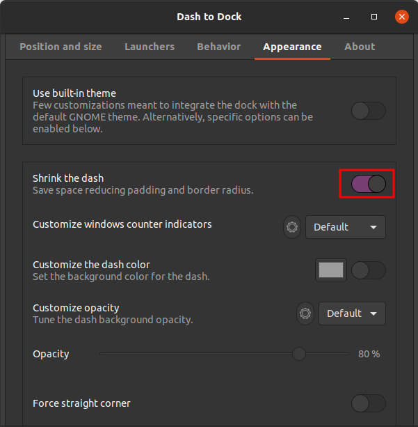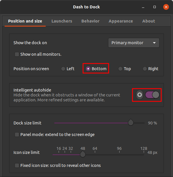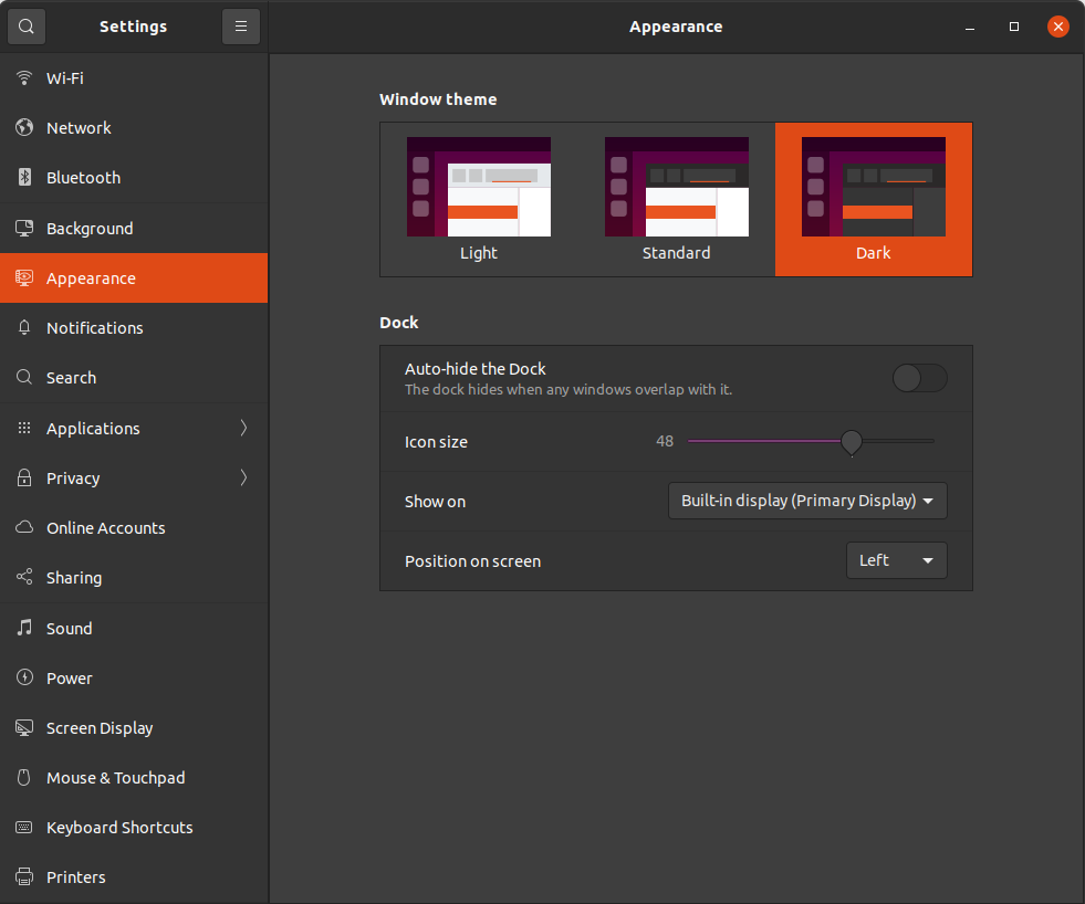 만약 dock가 아직 화면 왼쪽에 붙어있다면, Settings > Appearance > Dock > Position on scren > Bottom.