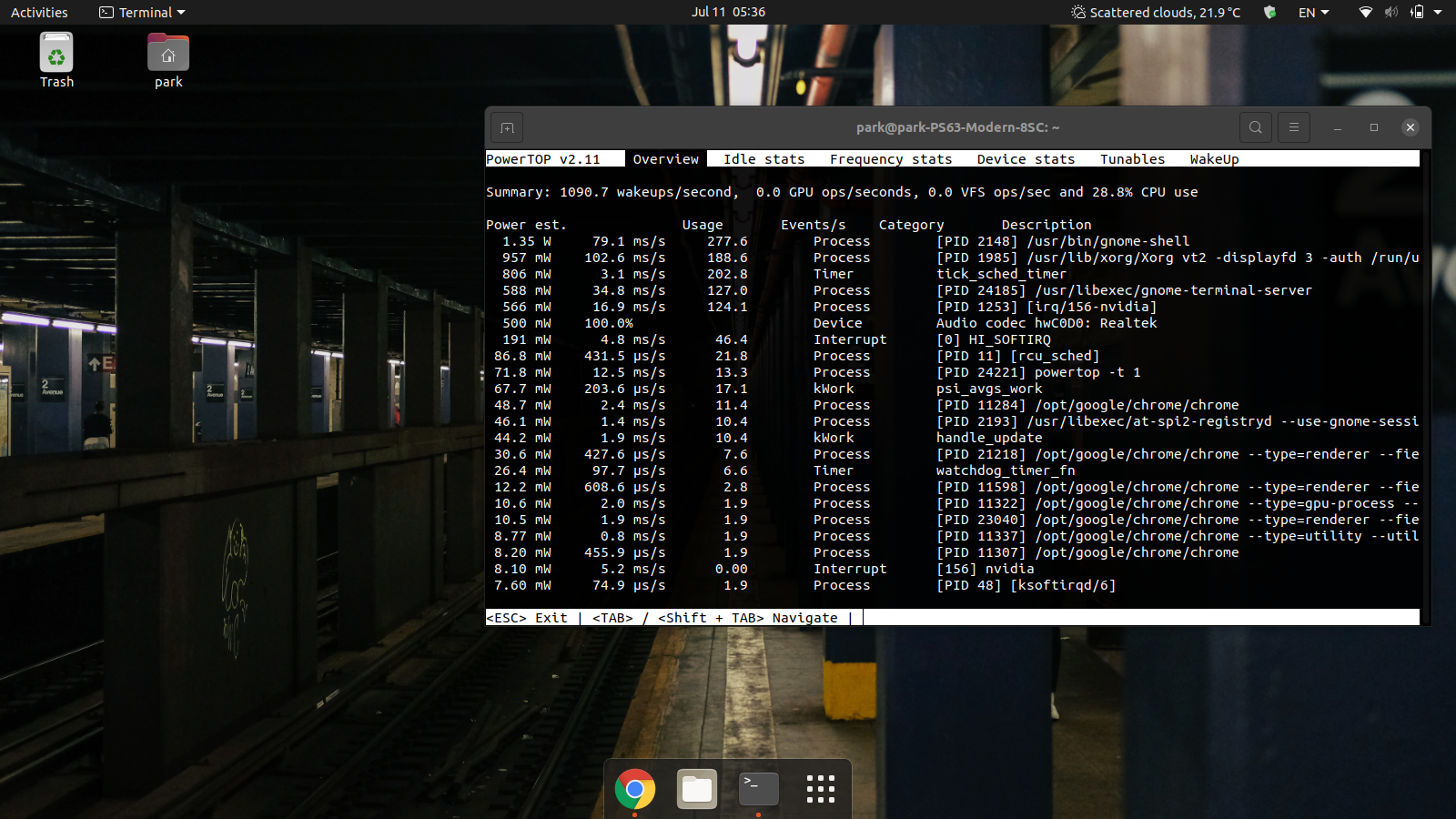 powertop은 시스템의 전력 사용량을 모니터링하기 위한 툴이다.