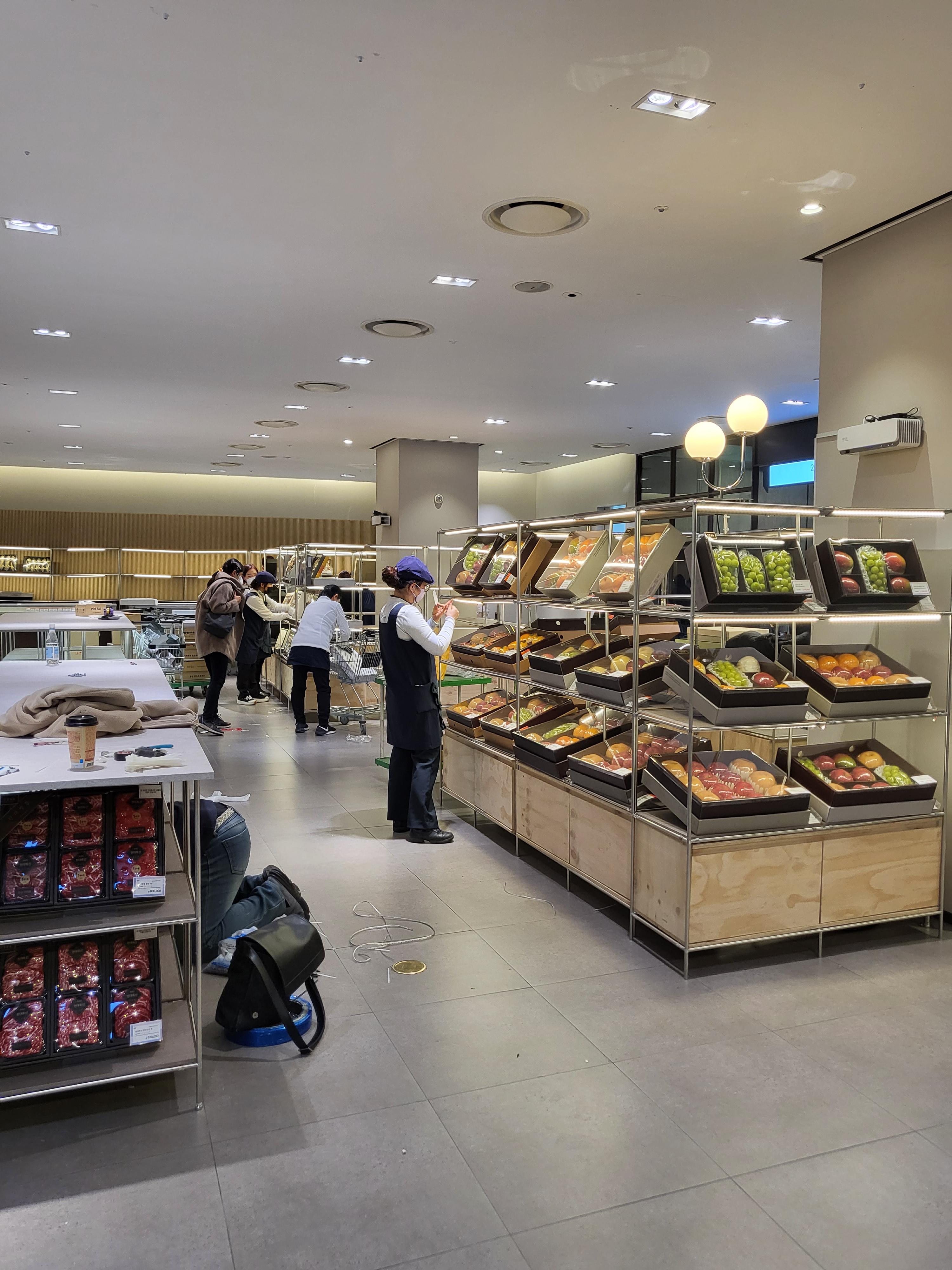 정말정말정말정말 힘들었다. 새벽에 백화점에서 하는 알바라길래 어느 정도 예상은 했는데 이렇게 힘들 줄은 몰랐다. 근무 배정을 받자마자 근무 톡방에 초대되어서 밤 10시까지 백화점 앞으로 오라는 공지를 받았다. 백화점 앞에서 기다리고 있으니 직원으로 보이는 분이 오셔서 같이 현대백화점 직원 전용 출입구로 입구에서 민증을 맡기고 들어갔다.