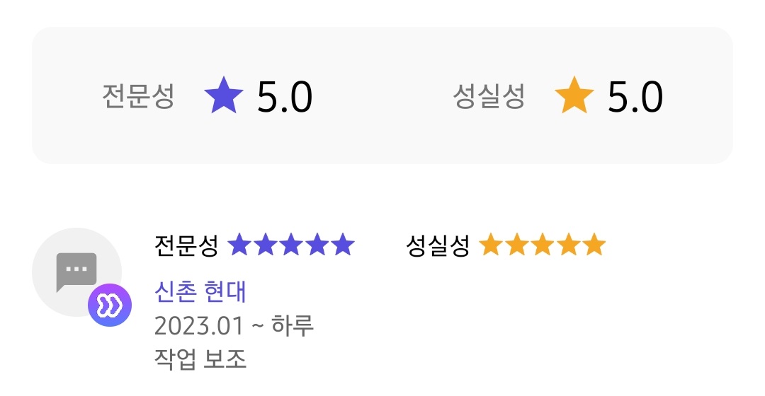 그래도 나 아니었으면 그 새벽에 작업자 구하기도 어려웠을거라 고마우셨는지 리뷰로 전문성과 성실성 별 5개를 주셨더라 허허.
