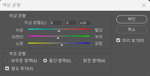 Ctrl+B 눌러 색상 균형 열기